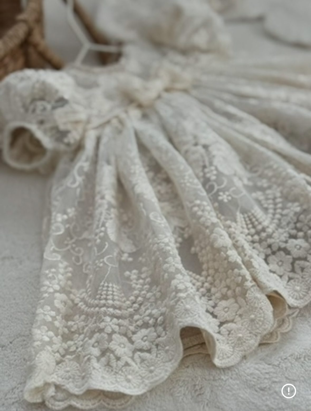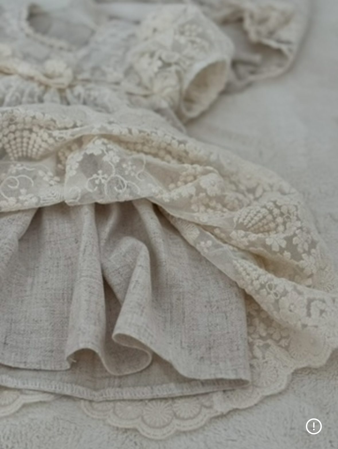 Niezwykle dziewczęca sukienka wykonana w całości z delikatnej bawełnianej koronki, odszyta lekką podszewką z lnu i wiskozy, która zapewnia komfort i piękne układanie się tkaniny.