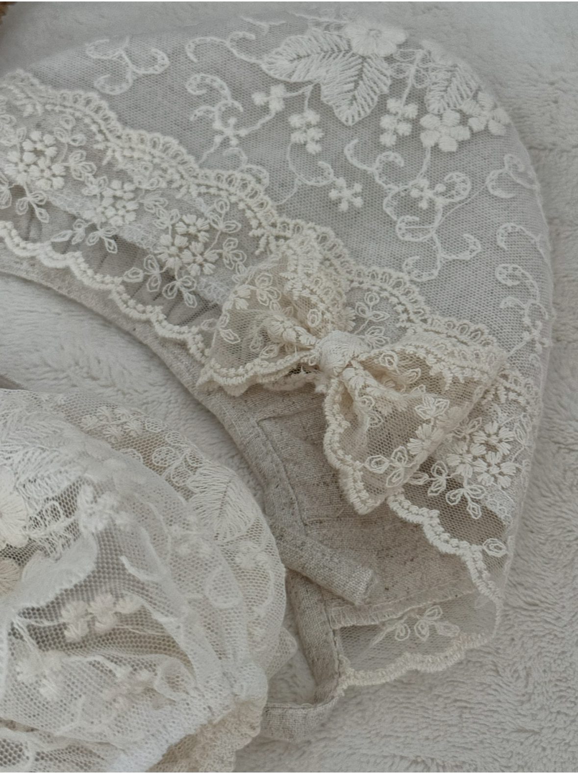 Model Colette można skompletować z dodatkami z tej samej kolekcji — koronkową bonetką oraz bloomersami, tworząc spójną i elegancką stylizację.