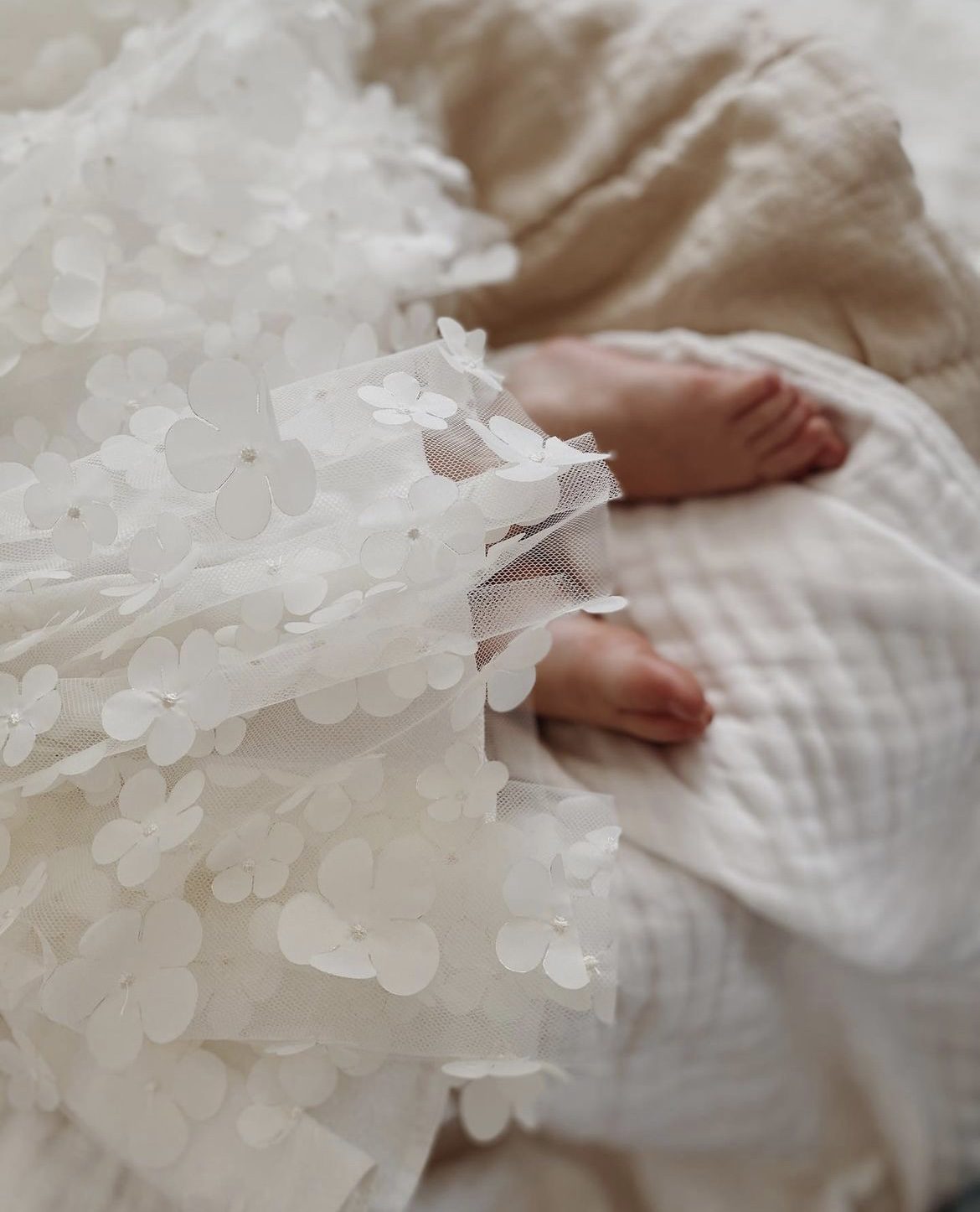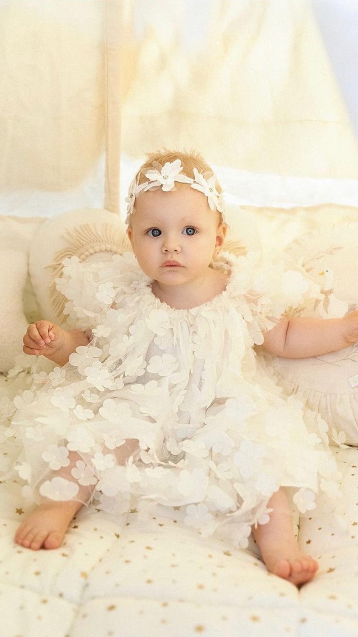Sukienka Marguerite to absolutnie wyjątkowa kreacja stworzona z myślą o niemowlętach i małych dziewczynkach, które mają wyglądać zachwycająco podczas ważnych uroczystości. Wykonana z tiulu w kwiatki 3D, prezentuje się niezwykle efektownie, nadając stylizacji subtelnego uroku i elegancji.