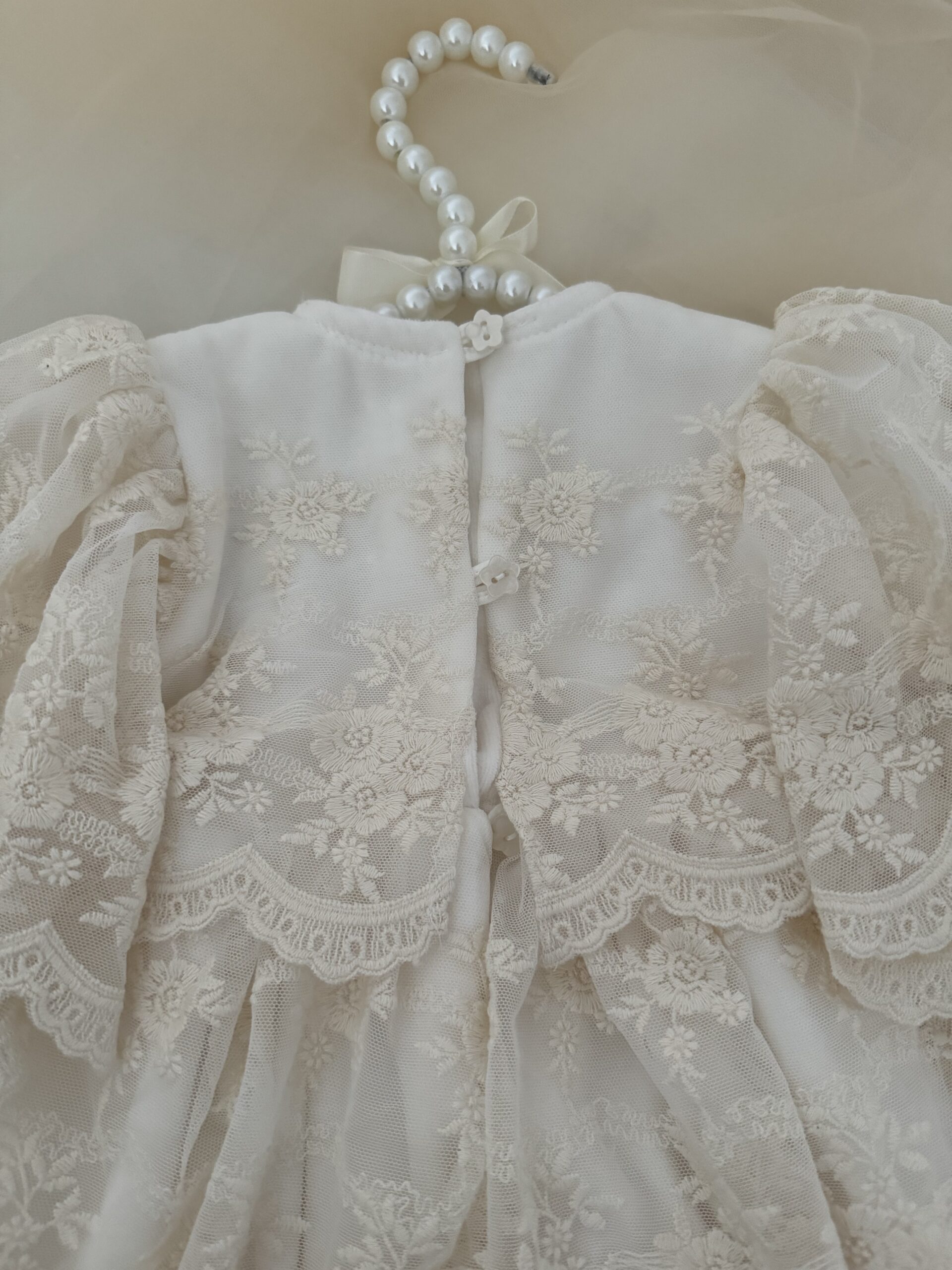 Jest miękka, delikatna i przyjazna dla skóry dziecka, dzięki czemu doskonale sprawdzi się jako kreacja na chrzest, roczek, wesela, przyjęcia oraz sesje zdjęciowe. Stylizację można uzupełnić opaskami, spineczkami, bonetkami lub wiankiem, tworząc spójną i zachwycającą całość.