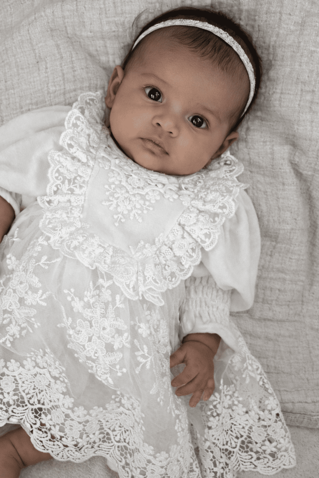 To idealna propozycja na chrzest, przyjęcia, wesela i inne wyjątkowe uroczystości. Stylizację można uzupełnić opaskami, spineczkami, bonetkami lub wiankiem, tworząc spójną i harmonijną całość.